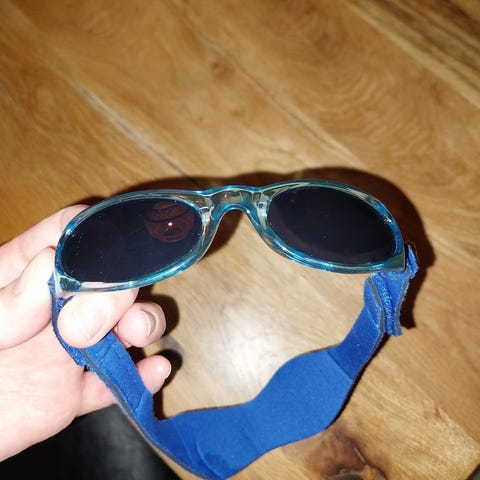 Myydään uudet lasten pilottimallin aurinkolasit. Sini-violetti heijastava pinta, ohuet kromisangat. Kevyet ja tukevat päässä.