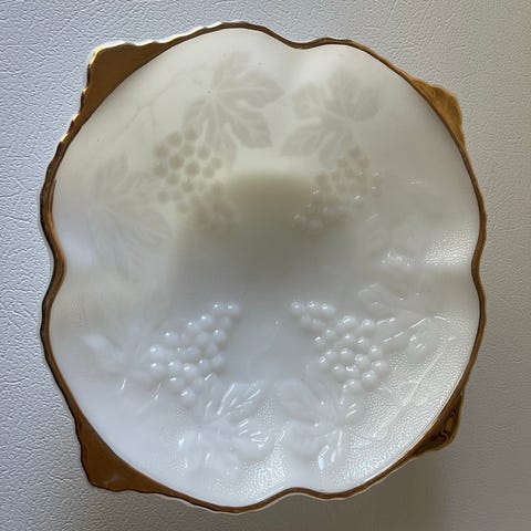 Myydään siisti kolmijaettu maitolasi tarjotin kultareunuksella, made in USA.. Virheetön, kultareunuksessa pieniä kuluma jälkiä. Amerikkalainen löydetyn tiedon pohjalta. Painavaa maitolasia, paino 1,5 kg.
