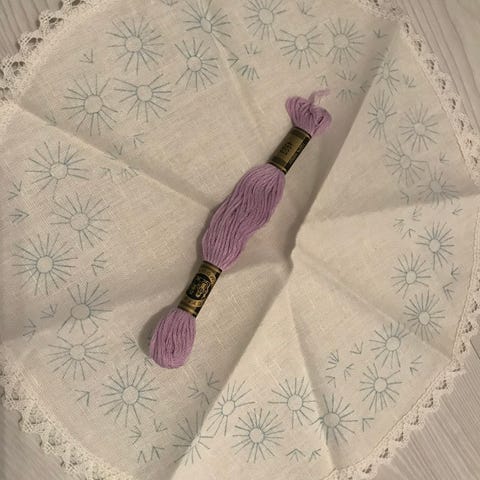 Kaunis kukka-aiheinen kirjonta/ristipistotyö pyyheliinapeitto.