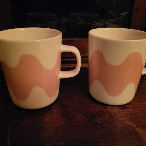 Uusia Lokki astioita mustalla juovalla. Kupit 2,5 dl kokoa, pienet tarjoiluastiat 5 dl. Myynnissä kaksi settiä, kummassakin kuppi, lautanen ja kulho mustilla juovilla. Vaaleanpunaisia vain kupit jäljellä, lahjapaketissa. Hinta yhdelle setille. Myydään myös yksittäin 15 e / astia