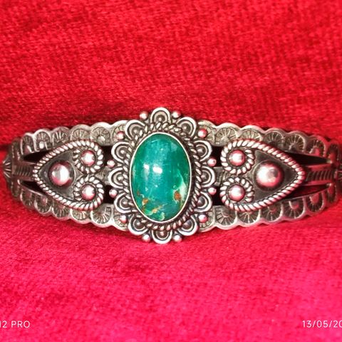 Todella kaunis vanha käsintehty Navajo rannekoru pinkillä helmiäis kivellä. Todella tarkkaa ja hienoa käsityötä.