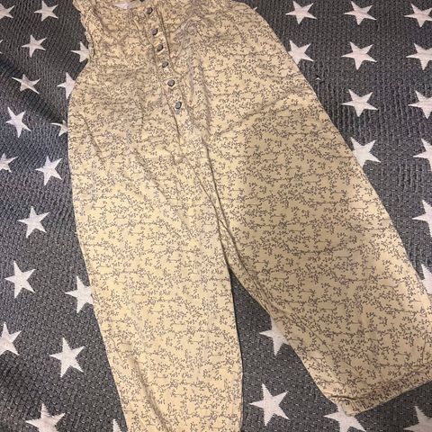 PompDeLux haalariasu. Väri vaalea lila. Koko 86. Röyhelöt edessä. Nappikiinnitys takana. Kuminauhat lahkeissa. Puuvillaa.