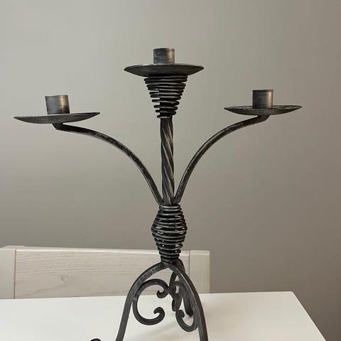 Teräksinen kynttilänjalka. Todella kaunis, siro jalka, tukeva jalka. Korkeus 35 cm