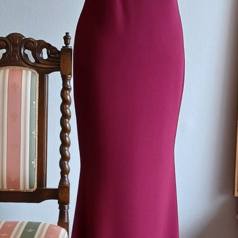 Kaunis, laskeutuvaa kangasta. Juhlaan kuin juhlaan sopiva mekko. Vaalean hopean harmaa.