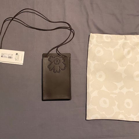 Myydään Marimekko käsilaukku. Vähän käytetty, siisti. Sisäpuolella pienempi vetoketjutasku.