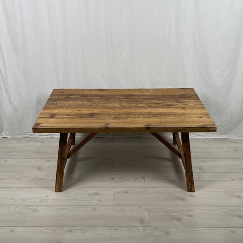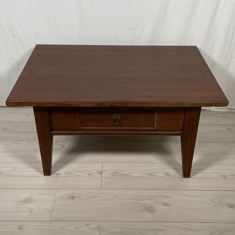 Tuotetiedot: Rustiikkinen sohvapöytä, jossa on neljä vetolaatikkoa.