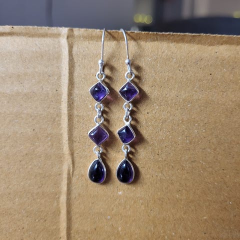 Hopeiset korvakorut fasettihiotuilla ametisteilla.