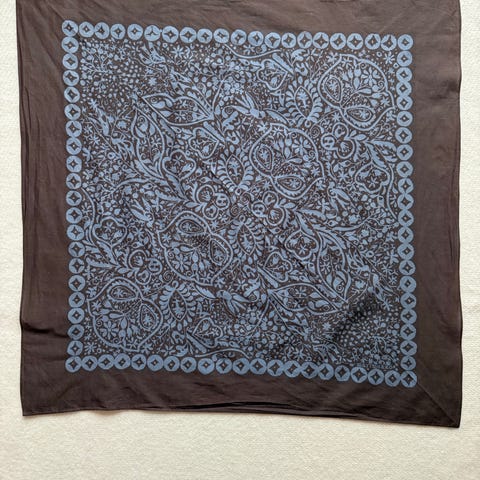 Design Maija Isola, v.1967. Materiaali 25% villa, 75% lyocell. Koko 99cm x 99cm. Materiaalista kertovan lapun olen sen suuruuden vuoksi joutunut leikkaamaan pois.