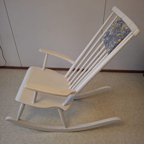 Tukeva valkoinen keinutuoli