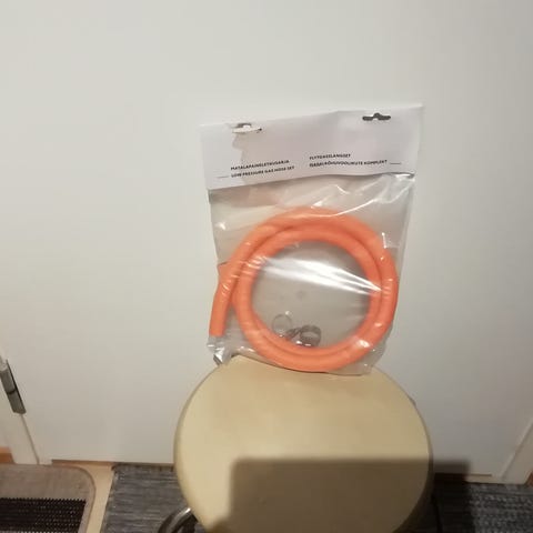 Paketissa on halkaisijaltaan 10 mm nestekaasuletku ja 2 kpl letkuliittimiä. Kaasuletku on pituudeltaan 1,2 metriä ja sen suositeltu maksimipaine on 30 bar.