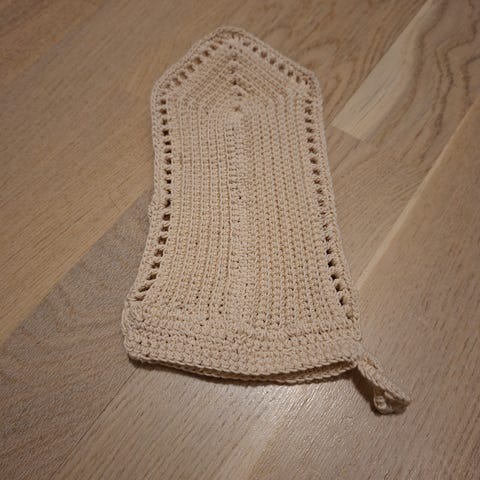 Virkattu pesukinnas. Kalastajalangasta joten kivs hiukkasen karhea