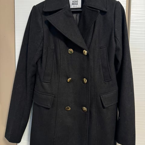 Oikein siisti tyköistuva villakangastakki. Nappi- ja vyökiinnitys. Iso, irroitettava huppu. Pidetty parempana takkina. Nouto tai toridiili.
