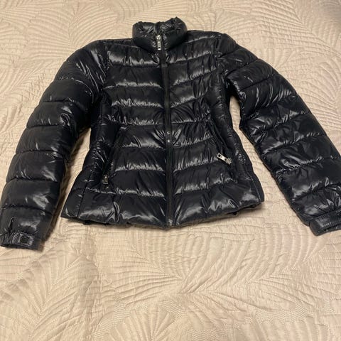 Mangon musta talvitakki koossa XS. Uudenveroinen, irroitettava huppu napeilla.