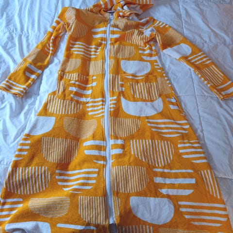 Ristomatti Ratian saunatakki koko 160. Remmi kiinni takaa niin ei katoa.