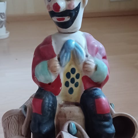 Vanha pelle, jossa kolikkoaukko selässä. Vähän kulumaa. Pohjan kumi on aika kova, joten voi murtua poistettaessa. Korkeus noin 19 cm.