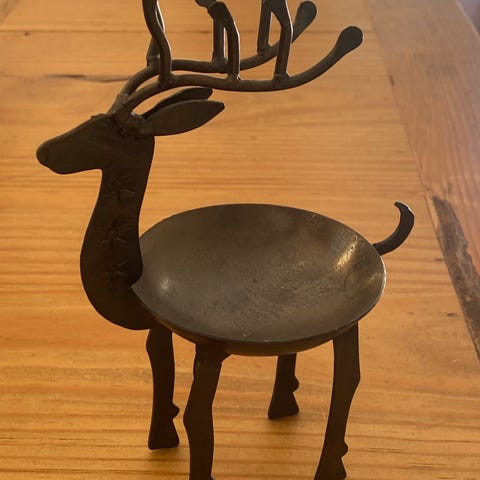 Metallinen poro tuikkuteline, Kork 17 cm. Sopii myös isommalle tuikulle. Tai korutelineeksi tai sormuksille, etc.