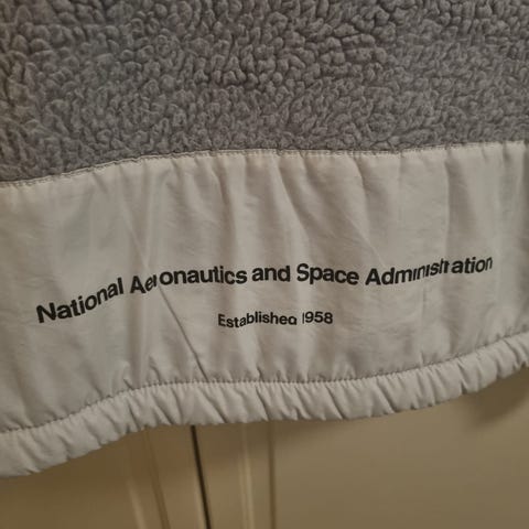 Merkki on tuotu Floridasta Kennedy Space Centeristä ja se on kiinnitetty takkiin ompelimolla. Takki on uniikki ja todella näyttävä, loistava löytö Nasa ja avaruusfaneille.