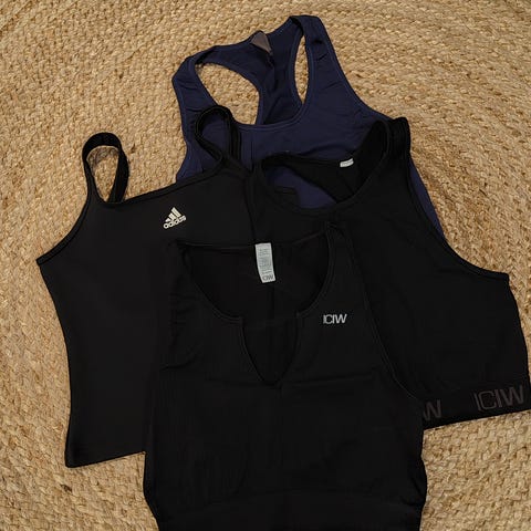 Myydään kaksi Puman treenitoppia painijaselällä, koko molemmissa XS. Topeissa on vuorellinen liiviosa, mutta muuten ovat vuorittomia. Joustava mutta napakka urheilukangas. Käytetty hyvä kunto, ei langanvetoja tai haalistumia. Hinta molemmille yhteensä 10e.