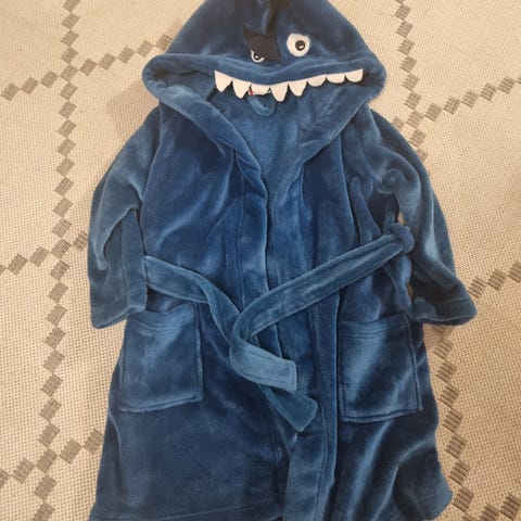 Herra Hakkarainen froteinen kylpytakki. Vyölle ei ole lenksuja, ollaan pidetty taskussa säilytyksessä. Ripustuslenksua on korjailtu, muutoin ehjä. Kokoa en löytänyt mut ehkä 120