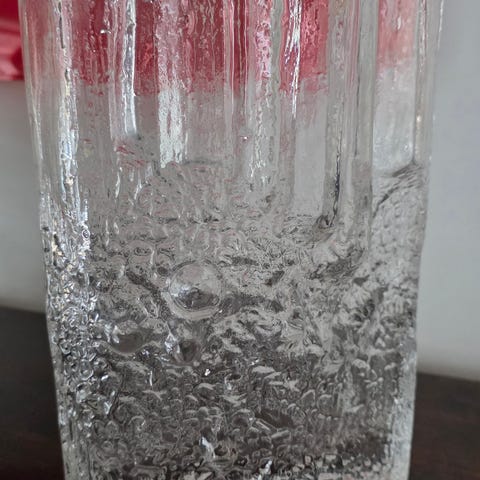 Tapio wirkkalan Pinus-maljakko. Korkeus 16,5cm. Ollut tuotannossa 70-luvun alussa. Ei signeerausta. Reunan sisäpuolella 2kpl n.2mm nirhaumaa, eivät ulotu ulkoreunalle asti. Merkattu värikynällä. Nouto tai postitus
