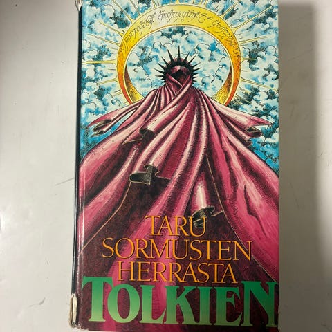 Vanha Taru Sormusten Herrasta Sormuksen Ritarit kirja vuodelta 1984. Muuten hyvässä kunnossa mutta yhdestä sivusta leikattu palanen (ei sisällä tekstiä leikatussa osassa). Varmaankin nimi leikattu pois.