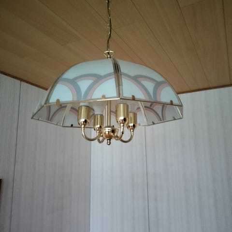 Retro kattovalaisin kolmella messingin värisellä pallovalaisimella. Korkeus säädettävissä ja pistokeliitin. Messingissä jonkin verran ajan tuomaa patinaa. Kaikki valaisimet toimii. Kuvun läpimitta noin 10cm.