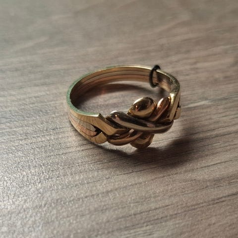 - 6-osainen kultainen pirunnyrkkisormus.