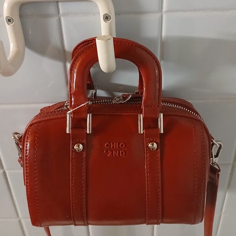Korealainen Marymond-laukku. Edessä kaksi pienempää taskua ja sisällä yksi tasku. Puuvillakangasta