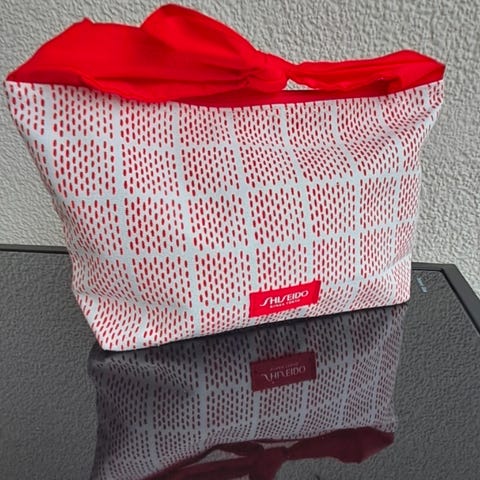 Korealainen Marymond-laukku. Edessä kaksi pienempää taskua ja sisällä yksi tasku. Puuvillakangasta.
