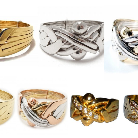 8-ja 12-osaisia 14- ja 18-karaatin kultaisia pirunnyrkkisormuksia.