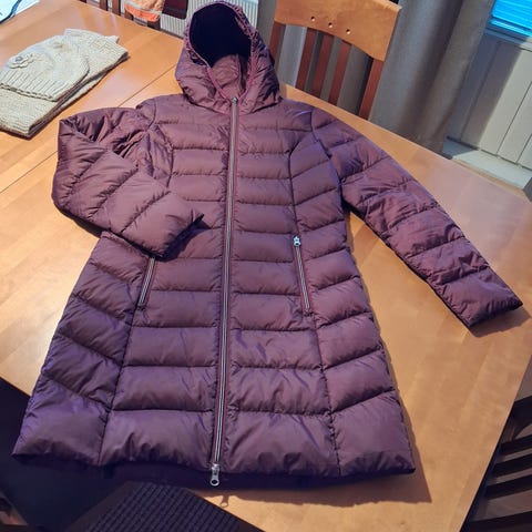 Myydään uudenveroinen paksu, muhkea untuvatakki. Takki on väriltään ruskea/kulta. Koko 34 (sopii hyvin 34/36 -kokoiselle).