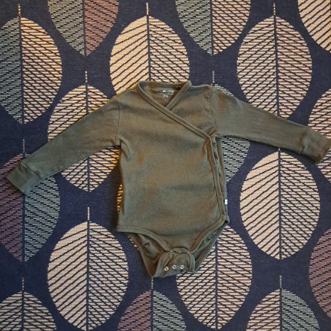 -oliivin vihreä raidallinen ribbibody pitkät hihat LindexBaby koko 74