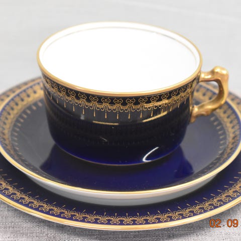 Vintage 1990-luvun Romanov Collection aito kobolttiposliininen ruokalautanen, halkaisija noin 27 cm
