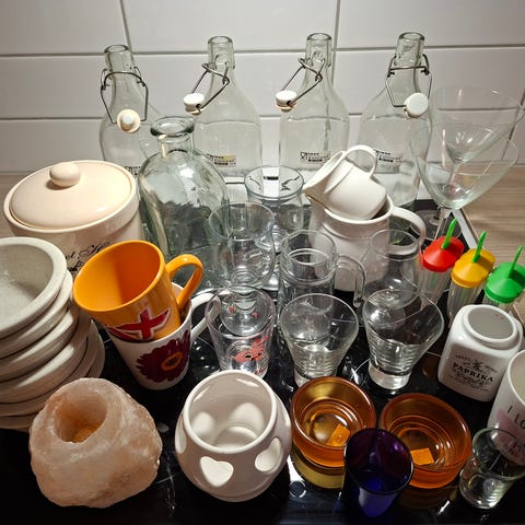 Myydään ruskea, söpö astia-setti. Sopii esimerkiksi mökille rentoon tunnelmaan tai vaikka lasten leikkeihin. Kuppien korkeus 7cm.