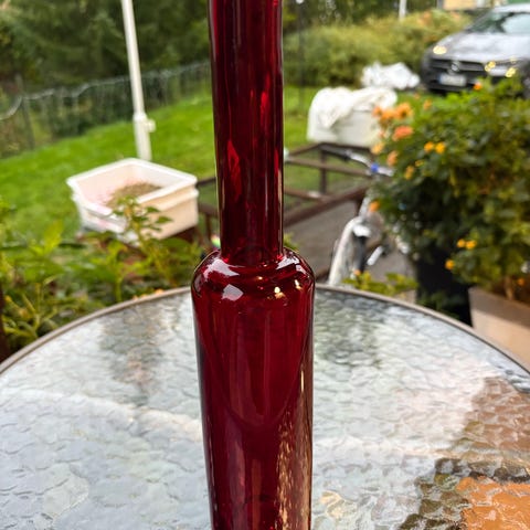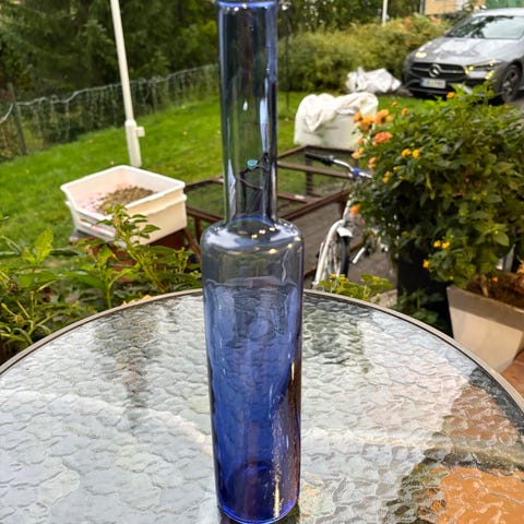 Myydään Nanny Stillin suunnittelema lasipullo, signeerattu: Riihimäen Lasi Oy Nanny Still. Virheetön kunto.