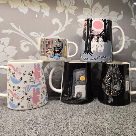 Myydään kuvanmukaiset muumikannut,koristeena olleet,hintapyyntö 35eur/KPL,vain nouto ja KÄTEINEN