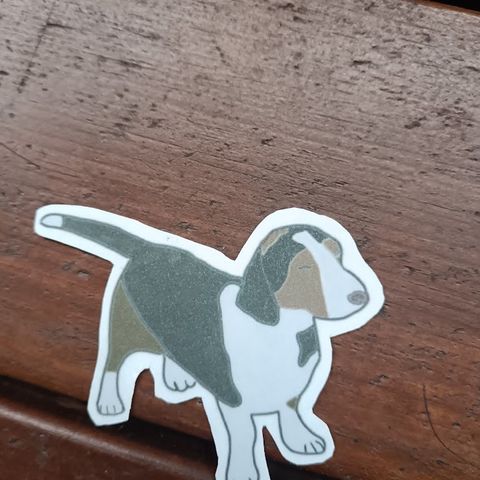 Kaunis tinattu koirapankki. Luppakorvainen koira pitelee sydäntä sylissään.