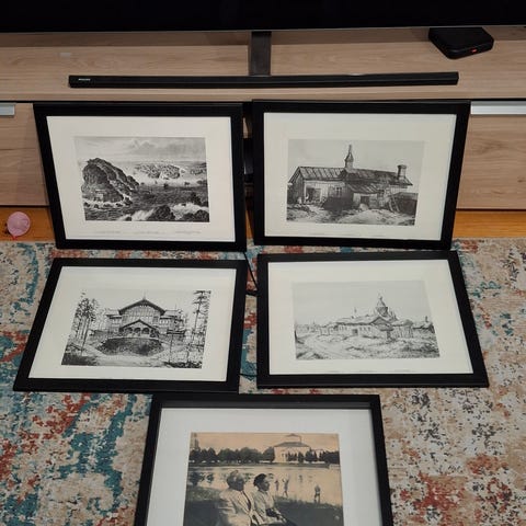 Taulut 70-luvulta. Lankatekiikalla tehdyt 70-luvun henkeä huokuvat hienot taulut.