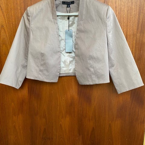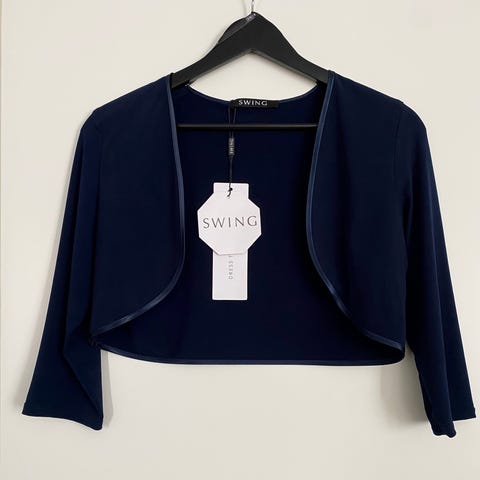 Viimeistele asusi tällä hienostuneella vadelmanpunaisella bolerolla englantilaiselta Phase Eight -merkiltä. Lyhyt ja vartaloa imarteleva malli on viimeistelty kauniilla tekstuurilla, joka tuo ylellisen ilmeen. Täydellinen juhla-asun viimeistelyyn tai tyylikkääksi lisäykseksi arkipukeutumiseen.