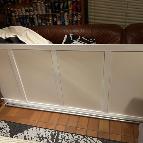 Seinäkkeen osia irrotettavissa kuvien mukaisesti. Seinäkkeessä ollut kiinni kaksi elementtiä joista toisessa lokeroita autoesitteille ja toisen puolen osiossa värimalleja. Ylä-ja alakulman pienet tahrat puhdistettavissa märällä rätillä. Seinäkkeestä saa siis todella siistin.