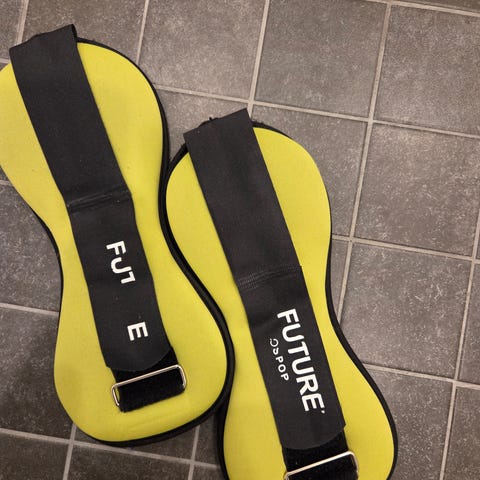 Nilkka- tai rannepainot, soveltuu kumpaankin, säädettävä kiinnitys. 0.5 kg. Hyvässä kunnossa/ehjät/siistit.