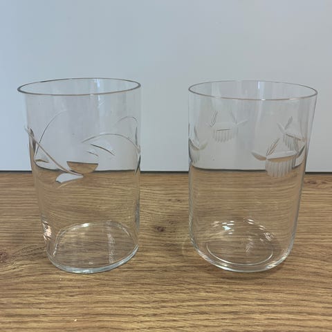 6 kpl 15 cm korkeita kristalli pikareita, ehjät. Vain nouto