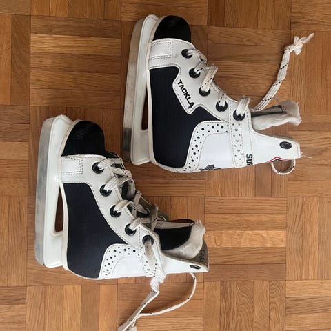 Raikkaan tyylikkäät valkoiset luistimet, joissa on pehmeä fleecevuori – lämpimät ja mukavat jalassa. joka on yksinkertainen mutta elegantti. Kirkas ja raikas ulkonäkö! Vain vähän käytetty, hyvässä kunnossa.