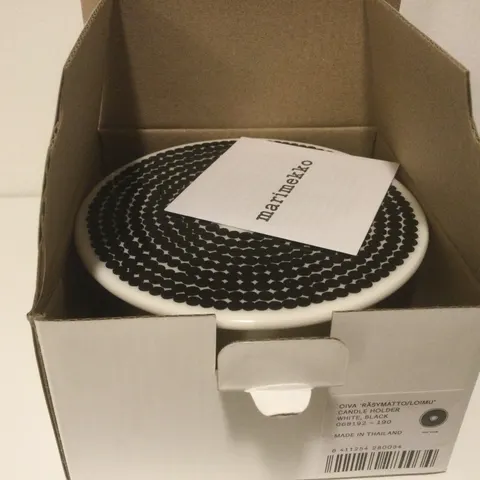 Marimekon uudenveroinen räsymatto kynttilänjalka. Kerran poltettu kynttilää tässä 😊.