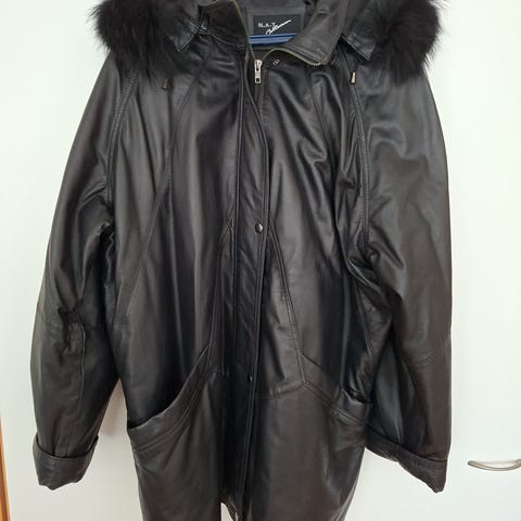 Kuopion nahkaliikkeestä ostettu joskus kauan sitten. Käytetty on, mutta silti uudessa kuosissa. Kai-kai 51cm, hiha 62cm, olkahelma 58cm.