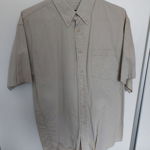 Beige (vaaleahko) pitkähihainen kauluspaita.