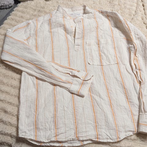 Myydään collagepaita. Etu ohutta kangasta, helmassa pitsireunus, takana ei kuvaa. Koko 158/164.