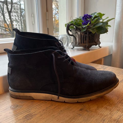 Myynnissä käytetyt, mutta hyväkuntoiset miesten Lloyd merkkiset kengät. Kengät ovat kokoa 8 (42), mutta vastaavat paremmin kokoa 42,5. Kengät ovat ulko- ja sisäpuolelta nahkaa. Kengissä on kuminen pohja.
