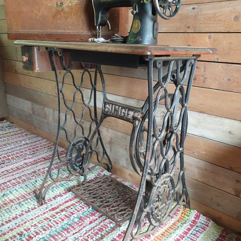Hihnan vaihtamalla/nykyistä lyhentämällä tästä vielä kone myös ompeluun. Tällaisenaan sisustukseen.