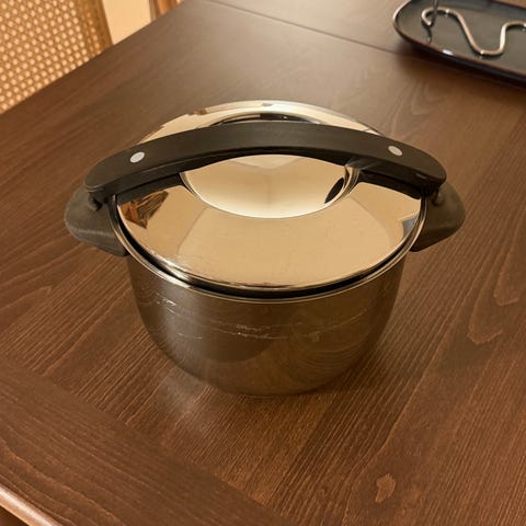 Käytetyt mutta hyvät Hackmanin teräskattilat. Ei sovi induktioliedelle.